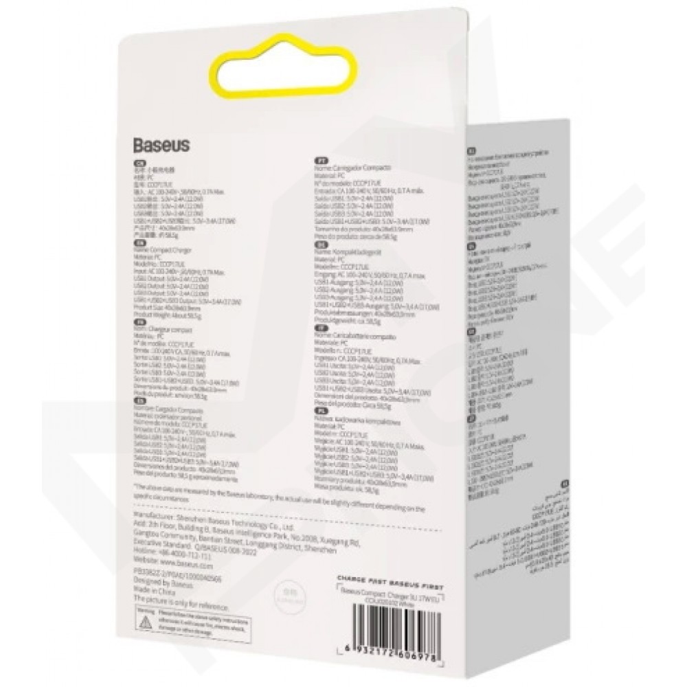 Зарядний пристрій Baseus Compact 3U 17W(CCXJ020102)білий