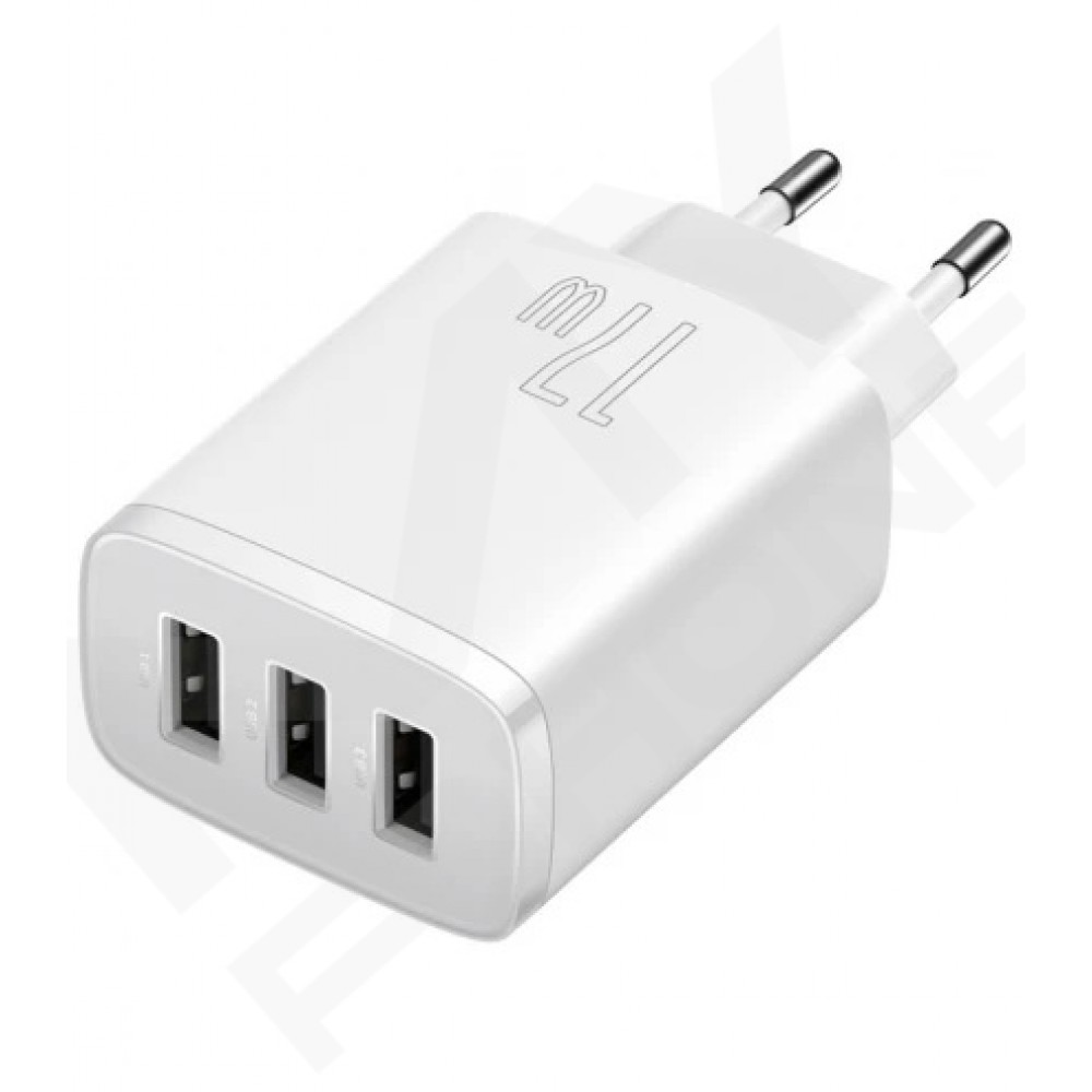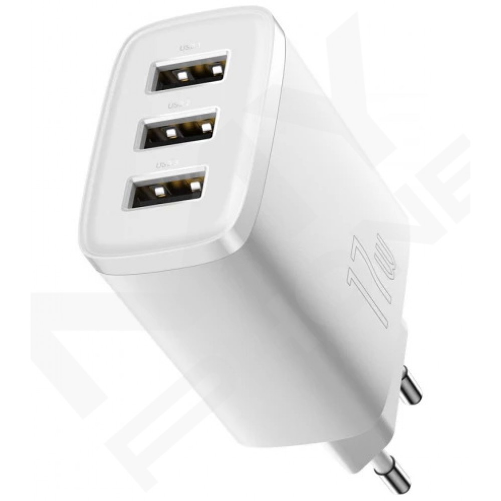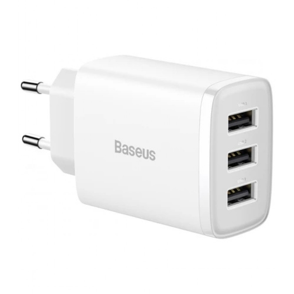 Теги: Baseus CCXJ020102, зарядний пристрій Baseus, 3 USB, 17W, USB-A, зарядка для смартфона, білий адаптер, блок живлення