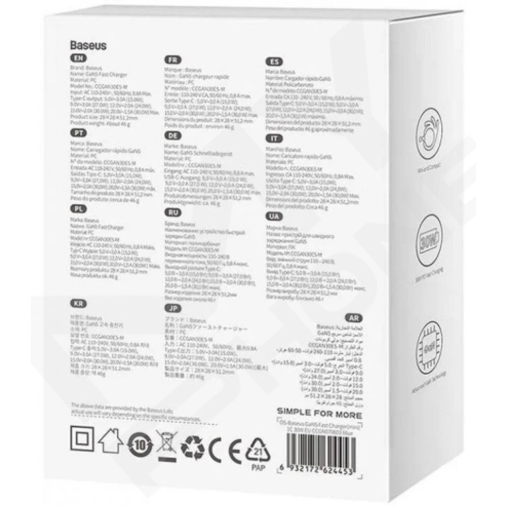 Теги: Baseus CCGN070603, Baseus GaN5, зарядний пристрій 30W, USB-C PD, GaN зарядка, швидка зарядка, блакитний адаптер, блок живлення