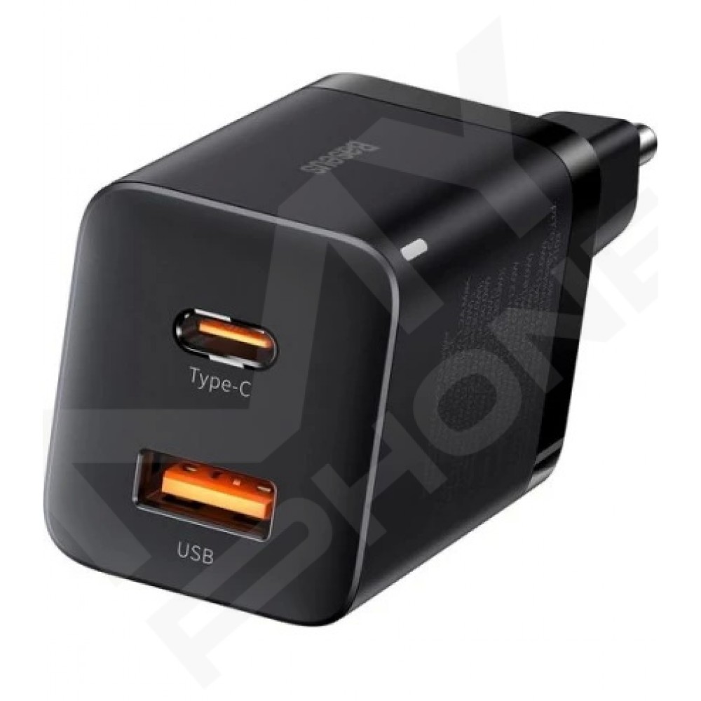 Теги: Baseus CCSUPP-E01, зарядний пристрій Baseus, 30W PD QC, USB-C, USB-A, швидка зарядка, смартфон, планшет, чорний адаптер, блок живлення