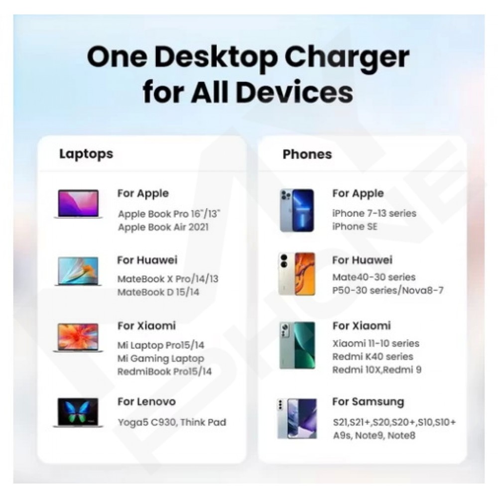 Цей зарядний блок ідеально підходить для ноутбуків, смартфонів, планшетів, бездротових навушників, смартгодинників та інших гаджетів. Підтримка протоколів PD3.1, PD3.0, QC4+, PPS, SCP, FCP гарантує максимальну швидкість заряджання для кожного підключеного пристрою.